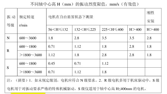 4.防爆電機(jī)不同軸中心高的振動(dòng)值烈度限值表