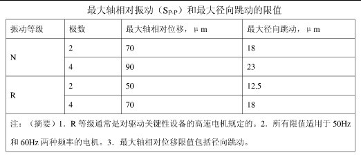 電動(dòng)機(jī)的軸相對(duì)振動(dòng)所采用的判據(jù)應(yīng)是沿測(cè)量方向的振動(dòng)位移峰峰值。建議僅對(duì)有滑動(dòng)軸承、額定功率大于1000kw的二極和多極電機(jī)測(cè)量軸相對(duì)振動(dòng),至于安裝軸測(cè)量傳感器的必要規(guī)定由制造廠和用戶(hù)事先協(xié)議確定。