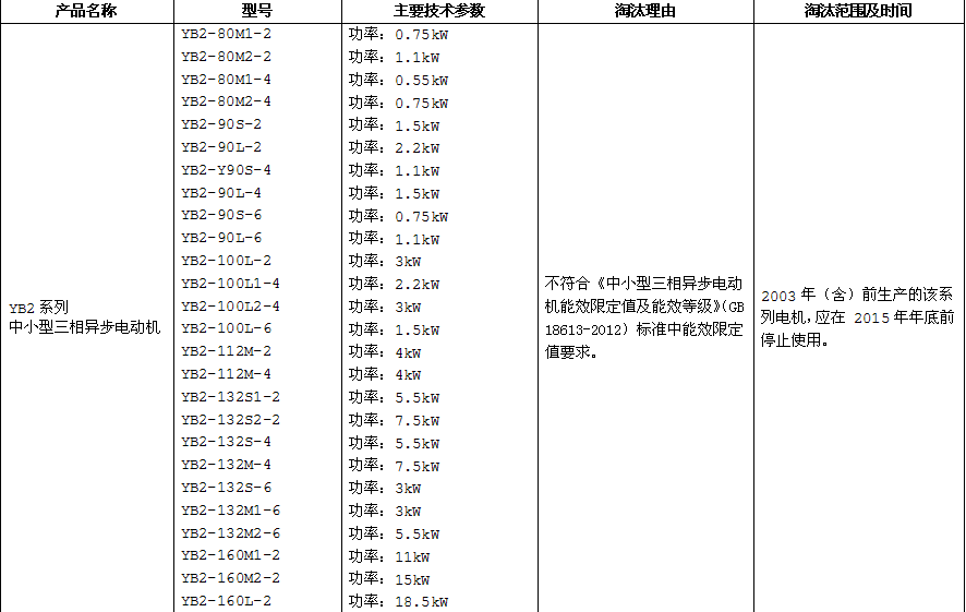 以上3張圖片就是YB2系列防爆電機將被淘汰的范圍和時間,也羅列出來了關(guān)于為什么要淘汰這一部分YB2系列防爆電機的原因。如大家還有什么疑問,可撥打公司電話詢問。
