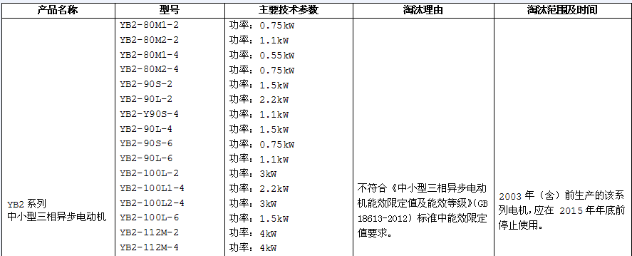 在上圖之中大家看到在淘汰范圍及時(shí)間里面有這么一句“2003年(含)前生產(chǎn)的該系列電機(jī),應(yīng)在2015年年底前停止使用”。這樣就規(guī)定了在2003年之后生產(chǎn)的機(jī)器還可以使用。也請(qǐng)大家放心使用。