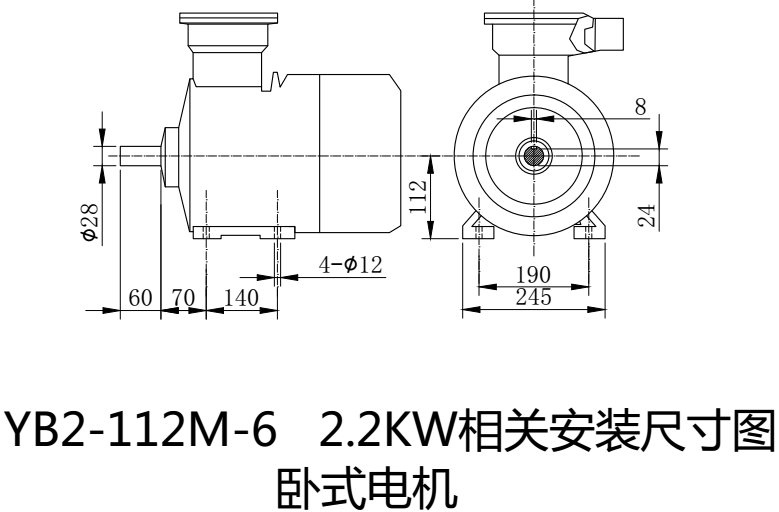 上星期和大家簡單講了一下YB2系列的100L-4-2.2KW隔爆型的防爆電機的相關安裝尺寸圖。今天和大家說一下YB2系列2.2KW的隔爆型防爆電機不是只有4極電機才有,同樣6極電機也有2.2KW的防爆電機,今天就來和大家看一下YB2系列隔爆型防爆電機112M-6-2.2KW的安裝尺寸圖。