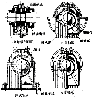滑動(dòng)軸承作為防爆電機(jī)的主要部件,其開(kāi)發(fā)設(shè)計(jì)及制造技術(shù)在近年來(lái)有了很大的發(fā)展,F(xiàn)已發(fā)展成為一個(gè)成熟的產(chǎn)品,并且已系列化、標(biāo)準(zhǔn)化、通用化,有專(zhuān)業(yè)的滑動(dòng)軸承生產(chǎn)廠。在防爆電機(jī)中使用的滑動(dòng)軸承主要有以下幾種類(lèi)型:A型端蓋式球面滑動(dòng)、B型端蓋式球面滑動(dòng)、座式球面滑動(dòng)軸承。