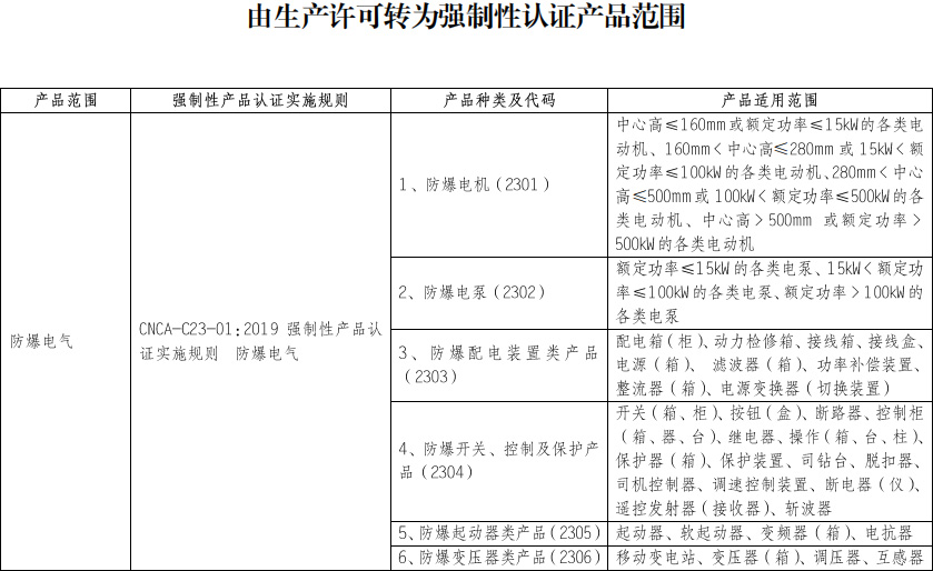 按市場(chǎng)監(jiān)管總局2019年34號(hào)文要求,自2019年10月1日起,防爆電氣產(chǎn)品納入CCC認(rèn)證管理范圍。2020年10月1日前,國(guó)內(nèi)企業(yè)生產(chǎn)的以上產(chǎn)品應(yīng)憑有效生產(chǎn)許可證或CCC認(rèn)證出廠、銷售或在其他經(jīng)營(yíng)活動(dòng)中使用。對(duì)于已獲生產(chǎn)許可證的企業(yè),若以上產(chǎn)品在2020年10月1日(含)后不再繼續(xù)生產(chǎn)的,無(wú)需辦理CCC認(rèn)證;否則,應(yīng)盡快提交認(rèn)證委托,并在2020年10月1日前獲得CCC認(rèn)證。