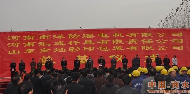 11月14日上午,縣工業(yè)集聚區(qū)彩旗飄飄,軍樂陣陣,南洋防爆機(jī)電、河南匯成釬具、滕州金燦彩印等三家招商引資企業(yè)舉行奠基儀式?h委書記劉政帶領(lǐng)縣四個班子領(lǐng)導(dǎo)出席開工典禮并為三個項(xiàng)目培土奠基。