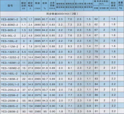 YE3高效節(jié)能電機(jī)的參數(shù)