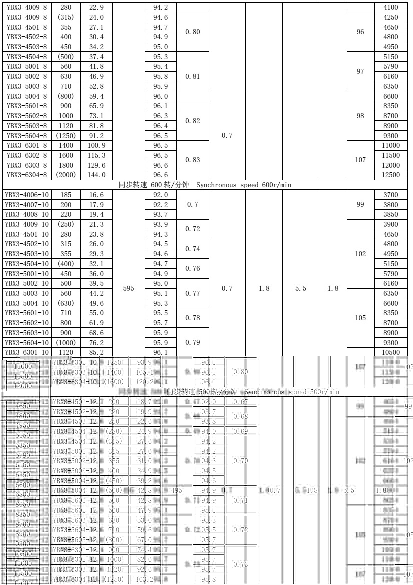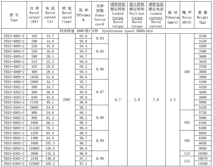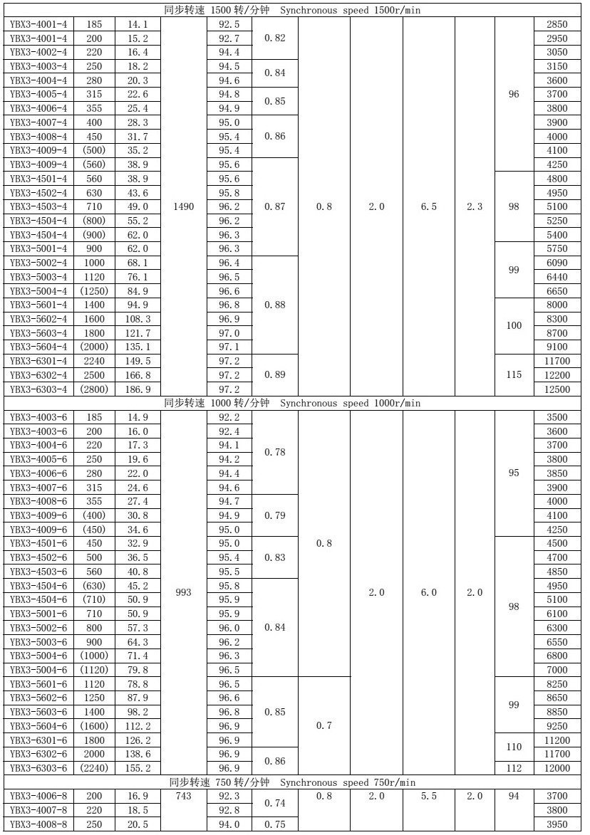 型譜中帶有括號(hào)的規(guī)格電機(jī)溫升按F級(105K)考核,其余規(guī)格可按B級(80K),如要求括號(hào)中功率規(guī)格的溫升按B級(80K)考核,型號(hào)應(yīng)當(dāng)向下順延一檔。